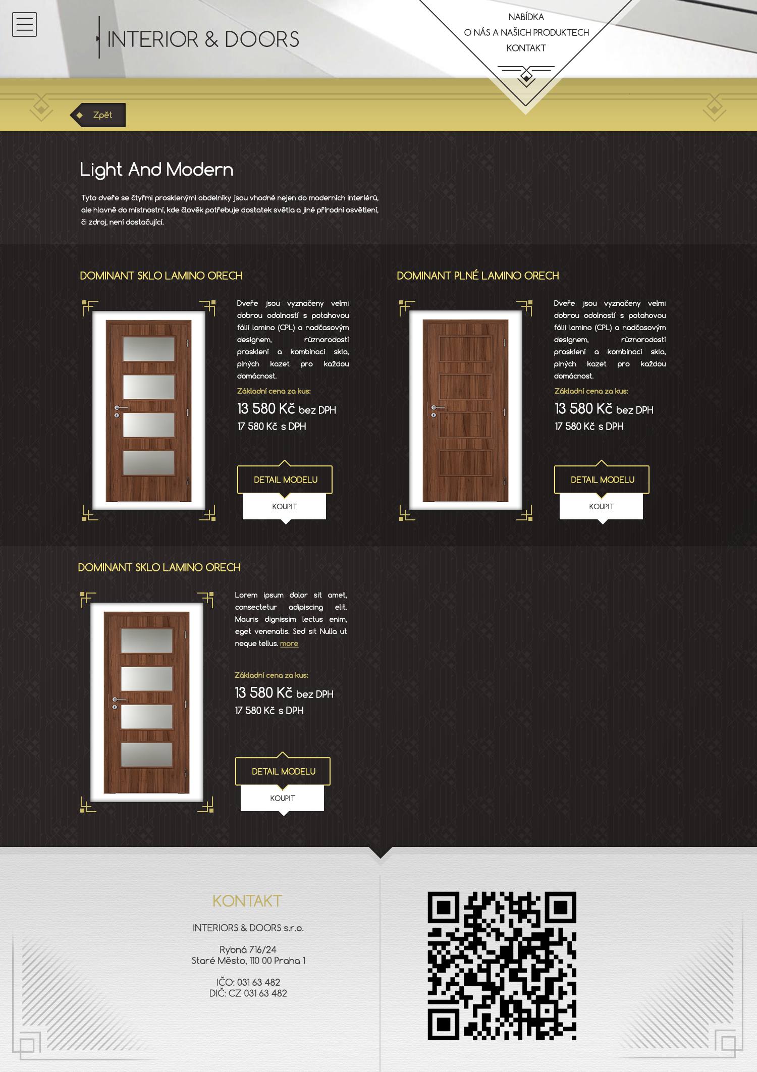 Tenhle projekt byl můj první velký web pro BussinesMC a dával jsem si na něm hodně záležet. Mělo jít o luxusní e-shop s dveřmi a protože jsem měl téměř volnou ruku, rozhodl jsem se ho pojmout prezentačně s čímž klient nadšeně souhlasil. Tím vznikl poměrně zajímavý styl a logo připomínající lehké ArtDeco, tedy sloh, pro který mám velkou slabost a jenž je pro mne synonymem vkusného luxusu.
